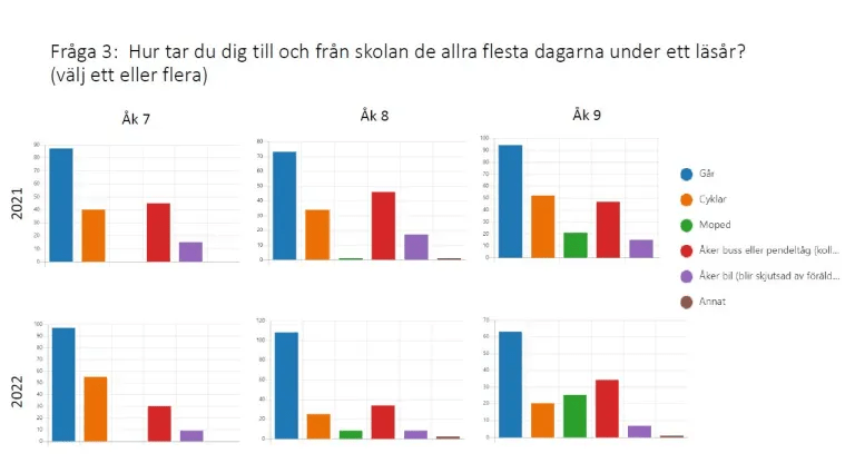 - Hur tar du dig till och från skolan de allra flesta dagarna under ett läsår? (välj ett eller flera)