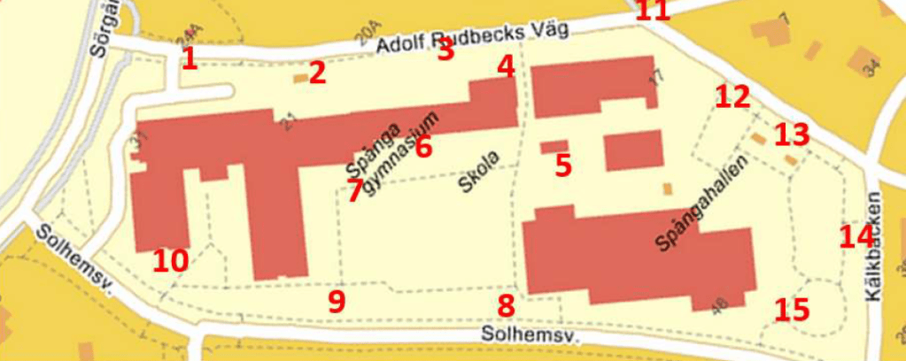 Spånga grundskola har nu en permanent frågepromenad uppsatt runt skolans kvarter. Istället för en skylt med frågan visas en QR-kod med internetadress till ett frågedokument som lätt kan ändras via Google drive.