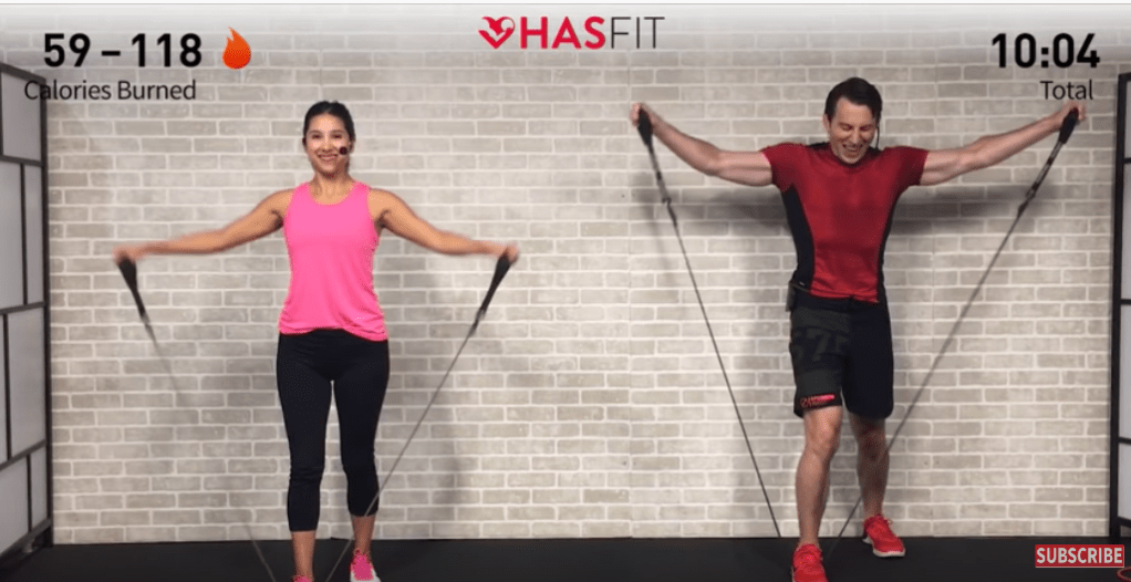 Vi har under året köpt in träningsband i olika motstånd och övningarna projiceras på väggen från projektor som eleverna sedan följer. Passen är ca 30-45 minuter långa.