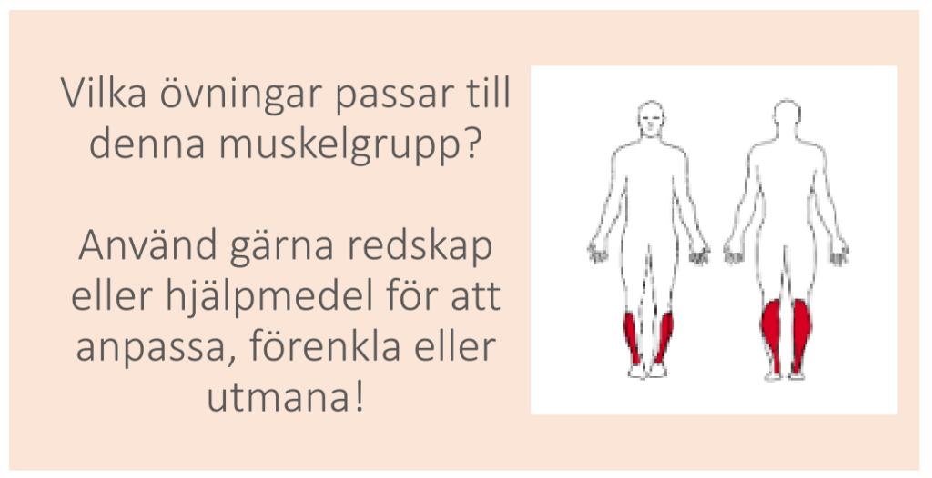 Hitta övningar som passar som styrketräning för respektive muskelgrupp. Behöver du hjälp så vänd på pappret och kolla ”tips”.